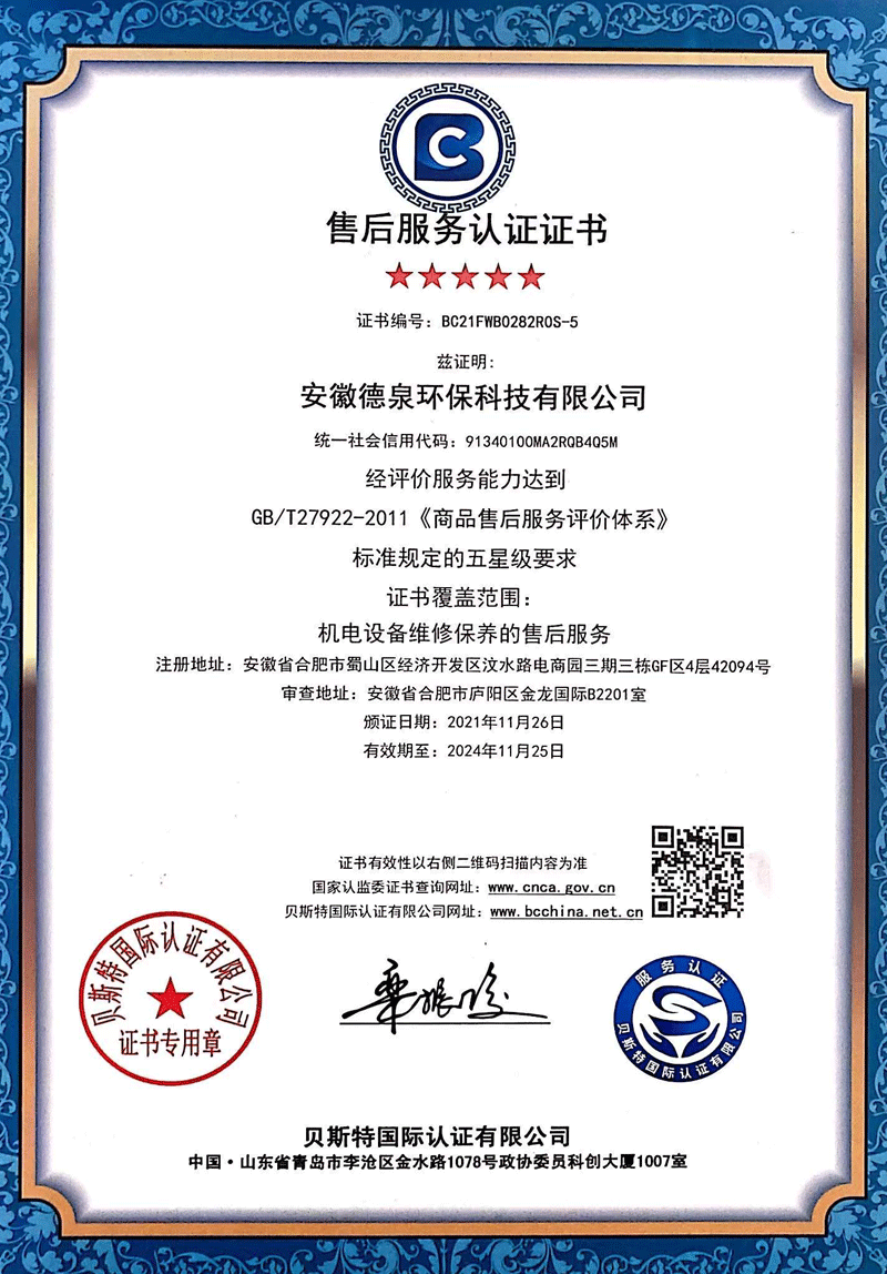 安徽德泉環保科技有限公司致力于廢水、廢氣、固廢技術處理研發、設計、施工及運營管理,從事環保設備及設施的制造和銷售,為環保項目系統提供專業的技術咨詢和服務。是一家集建筑勞務分包,工程總承包(EPC)、項目投資(BOT/PPP)、運營管理(O&M)于一體的綜合性新型高科技企業。